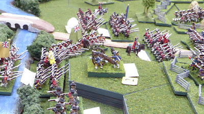 1/23 Legere bears down upon Cole's 1/27th Foot. Again, the French attack in column screened by a swarm of skirmishers. |