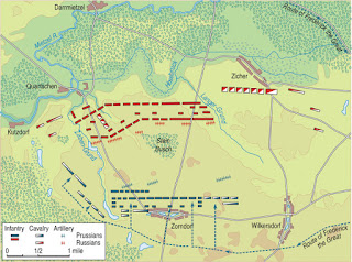 - -1 point for each unit Done For. Points are doubled if Russian unit is Done For and retreats/routs into woods behind Russian Second Line or if Prussian unit is Done For and retreats/routs beyond Zorndorf.